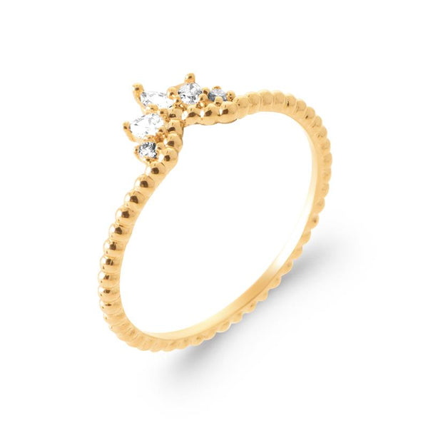 Ce trio de bagues Sophie en plaqué or allie finesse et éclat. Chaque bague, délicatement travaillée, peut être portée seule pour un look minimaliste ou associée aux autres pour un effet raffiné et lumineux. Les zircons sertis apportent une touche d’éclat qui sublime la main avec élégance. Véritable bijou modulable, ce trio s’adapte à toutes les envies et occasions.