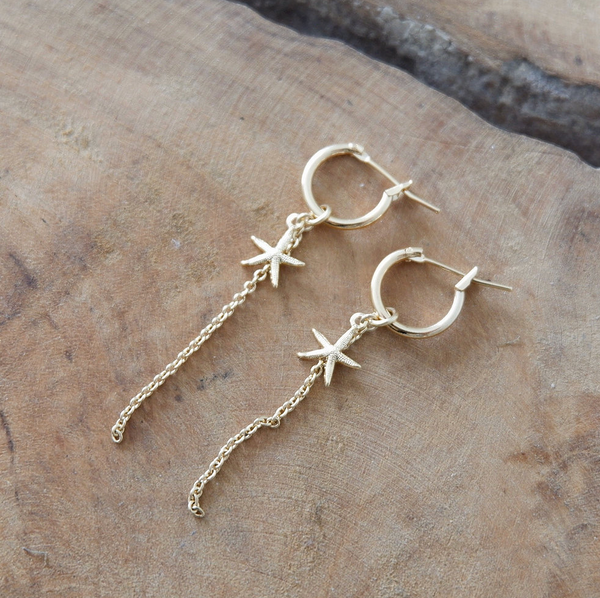 Design : Créoles avec pendentif étoile de mer et chaînette mobile