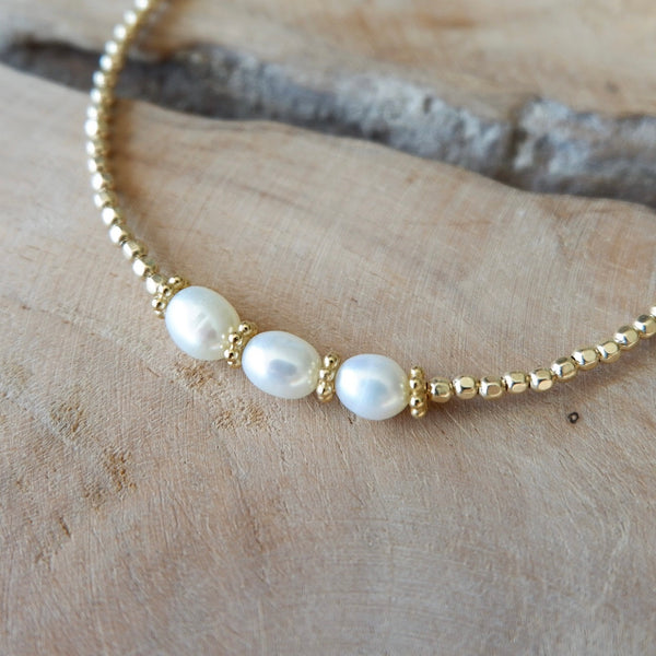 Matière : Perles d’eau douce naturelles et perles en gold filled